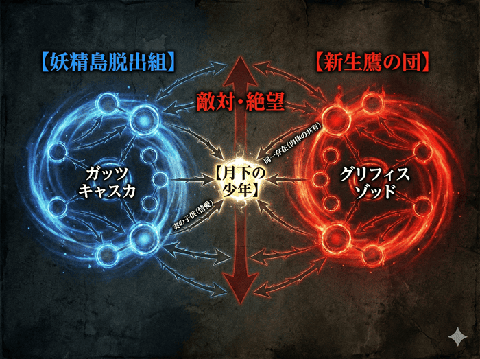 かつてグリフィスは「対等な者」を求めましたが、皮肉にも彼を倒すのは、彼自身の中にいる「弱き者(子供)」の感情なのかもしれません。