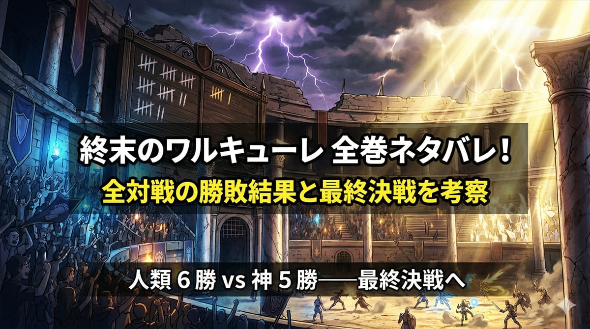 全13戦の勝敗一覧から、名勝負の徹底考察、最新27巻の展開、そして最終決戦の予想まで、原作を全巻読み込んだ筆者が一気に解説していきます。